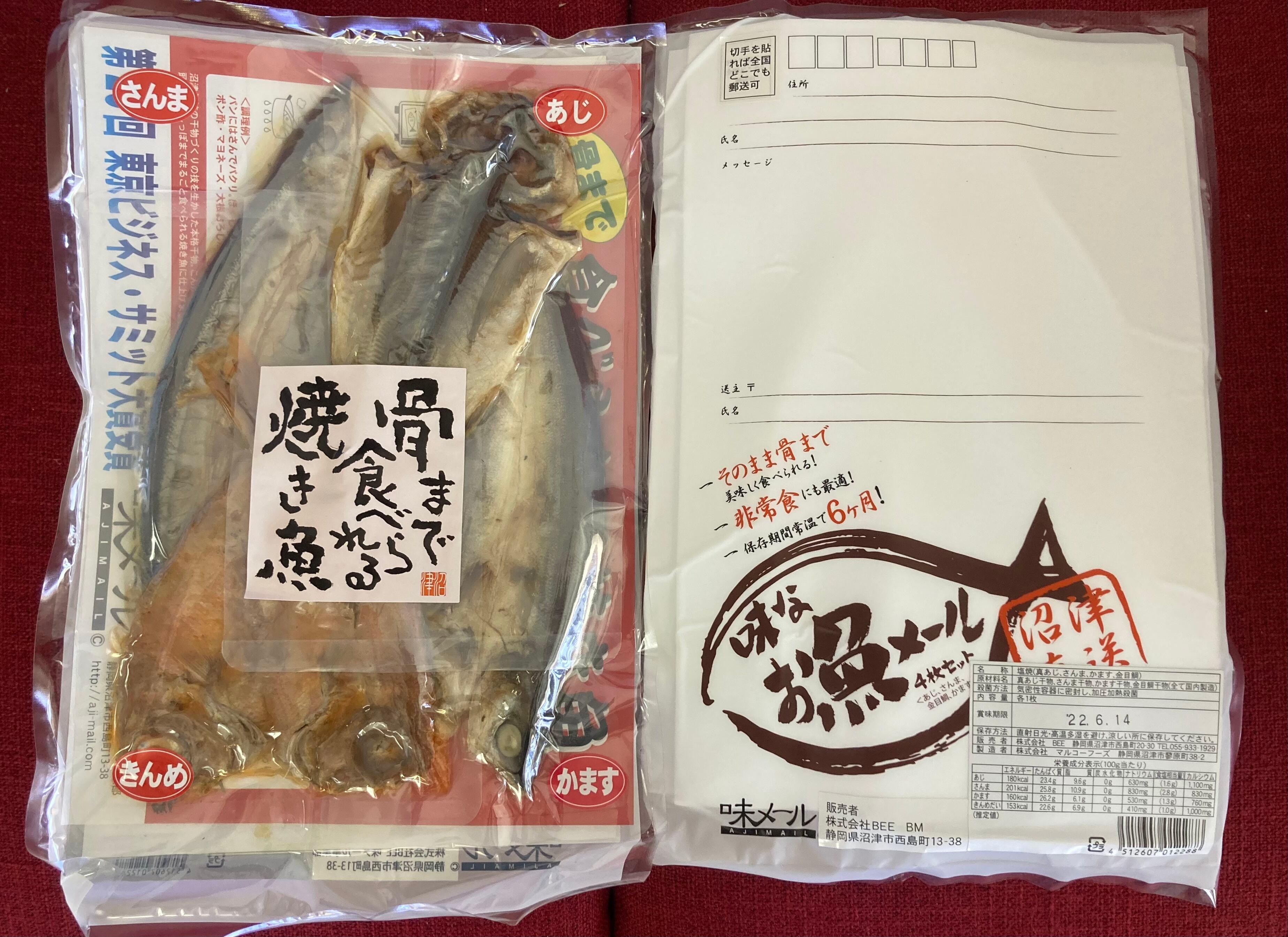 真空パックの骨まで食べれる沼津の干物をそのまま〒ポストに投函できる味メール!